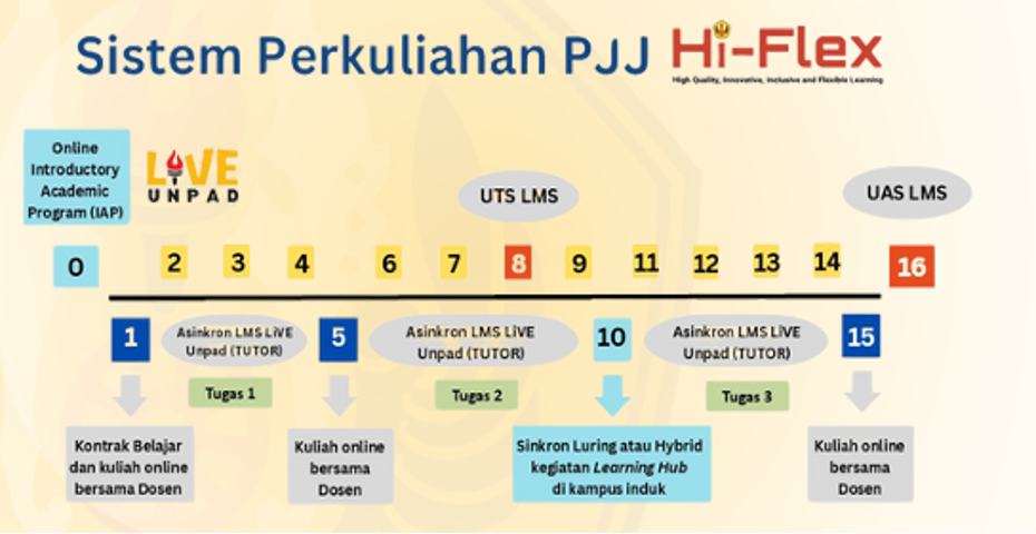 PJJ Unpad menggunakan desain pendidikan Hi-Flex (High Quality, Innovative, Inclusive and Flexible Learning). Desain ini dikembangkan oleh Kantor Pengelolaan Pendidikan Jarak Jauh (KPPJJ) atau Padjadjaran Open Education and Distance Learning Centre (PaDLoC) di bawah Direktorat Akademik Universitas Padjadjaran yang berkomitmen untuk menyelenggarakan pendidikan yang unggul, inklusif dan berdampak bagi masyarakat Indonesia terlepas dari jarak, ruang, dan waktu.