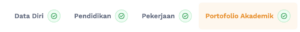 - Mengisi Pemenuhan Syarat Data Pendukung seperti; Data Diri, Pendidikan, Pekerjaan dan Portofolio Akademik (TKA & TKBI). Pengisian sudah benar semua dan bisa lanjut ke langkah berikutnya setelah semua ter-ceklis menjadi hijau. Klik Tombol Selanjutnya dan Anda akan berada di Langkah 2.